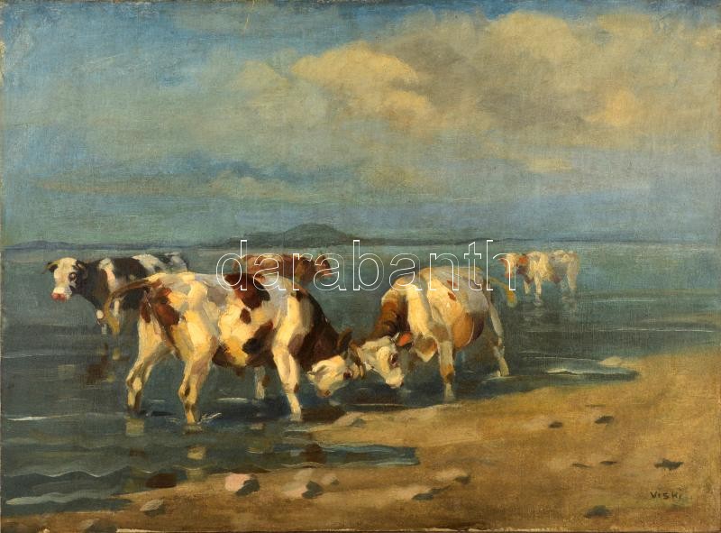 Viski János (1891-1987): Acsarkodó tehenek a Balatonban. Olaj, vászon,... https://www.darabanth.com/hu/32-Nagyaukcio/32.1/Festmenyek-es-grafikak/Festmenyek-es-grafikak~13345/Viski-Janos-1891-1987-Acsarkodo-tehenek-a-Balatonban-Olaj-vaszon-jelzett-foltos-60C39780-c~II2016727
