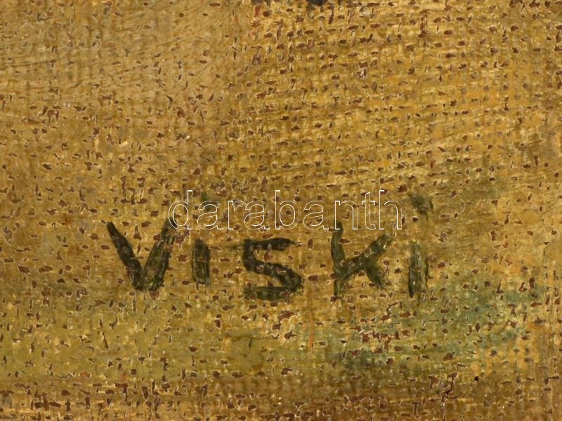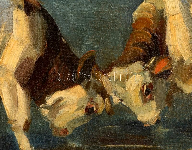 Leírás: Viski János (1891-1987): Acsarkodó tehenek a Balatonban. Olaj, vászon, jelzett, foltos, 60×80 cm