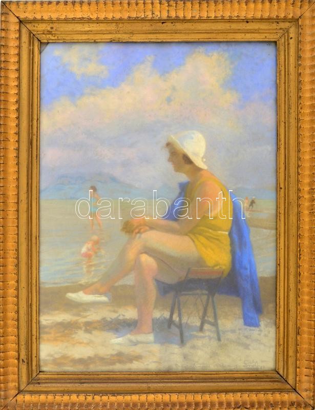 Leírás: Z. Soós István (1900-2002): Fenyvesi parton. Pasztell, papír, foltos, jelzett, üvegezett hibás keretben, 48×35 cm