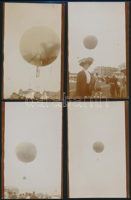 1909 A frankfurti Internationale Luftschiffart Austellung (Nemzetközi Légijármű Kiállítás) keretében rendezett hőlégballon versenyről készült fotók, 8 db, fotók hátoldalon németül feliratozva, jó állapotban, 8,5×11,5 és 9×14 cm-es méretben / Frankfurt, Internationale Luftschiffart-Austellung, air balloons, 8,5×11,5 és 9×14 cm