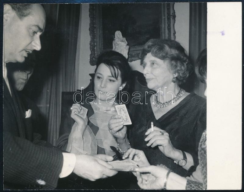 Leírás: 1968 Károlyi Mihályné gróf Andrássy Katinka (1892-1985) Rodolfo társaságában, feliratozott sajtófotó, 9×11 cm