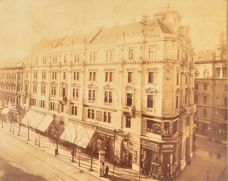 cca 1900 Budapest, Rákóczi út 10. - Emmer bérház nagyméretű keményhátú fotója, Erdélyi Mór fényképész műterméből, a karton sérült, hiányos, de a fotó ép, fotó: 38x49 cm, kartonnal: 50x69 cm.