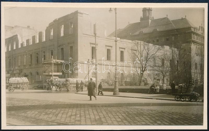 cca 1929 Bp. V. A piaristák Eskü téri épületének bontása Budapesten, Kinszki Imre (1901-1945) budapesti fotóművész hagyatékából, jelzés nélküli, vintage fotó, 5x8 cm