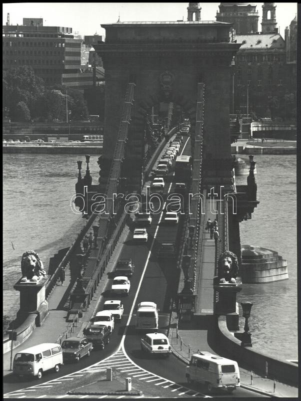 Leírás: cca 1978 Budapest, Lánchíd, háttérben az Országos Tervhivatal épülő új székháza, Balásy Pál feliratozott, vintage fotója, 38x29 cm