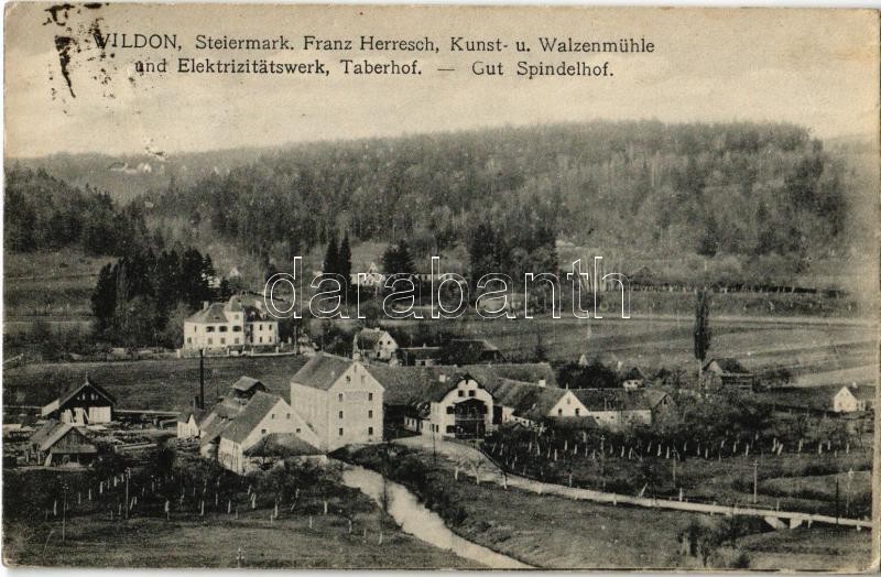 Leírás: Wildon (Steiermark), Franz Herresch Kunst- und Walzenmühle und Elektrizitätswerk Taberhof, Gut Spindelhof / mill and power station, factory