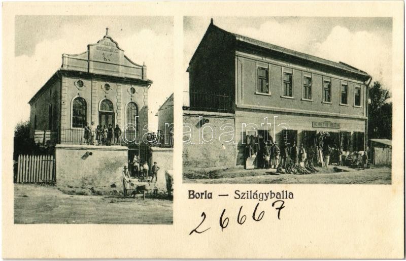 Leírás: Szilágyballa, Borla; Ignatio Klein üzlete, "Jertek, imádjkuk az Urat!" templom. Barth Foto kiadása / shop, church (Rb)