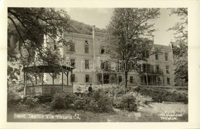 1937 Trencsénteplic, Trencianske Teplice; Villa Viktoria. Foto Holoubk... https://www.darabanth.com/hu/32-Nagyaukcio/32.1/Kepeslapok/Felvidek~13727/1937-Trencsenteplic-Trencianske-Teplice-Villa-Viktoria-Foto-Holoubkova-villa-photo~II2047094