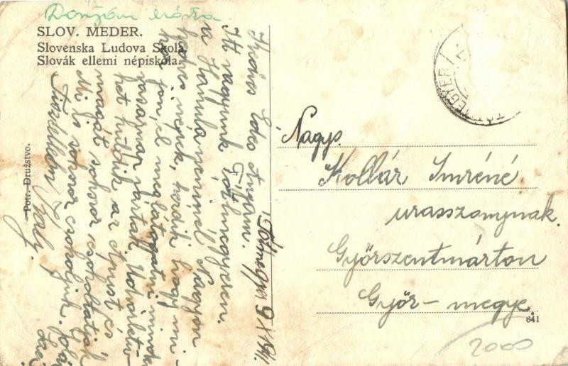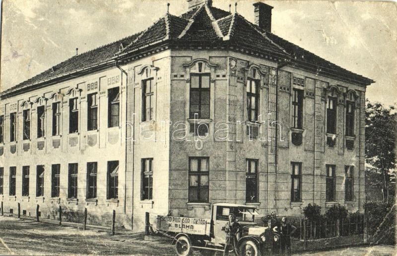 Tótmegyer, Slovensky Meder, Palárikovo; Slovenska Ludova Skola, Sklad piva / Szlovák elemi iskola, előtte K. Blaha sörraktárának teherautója / school, beer warehouse truck (Rb)