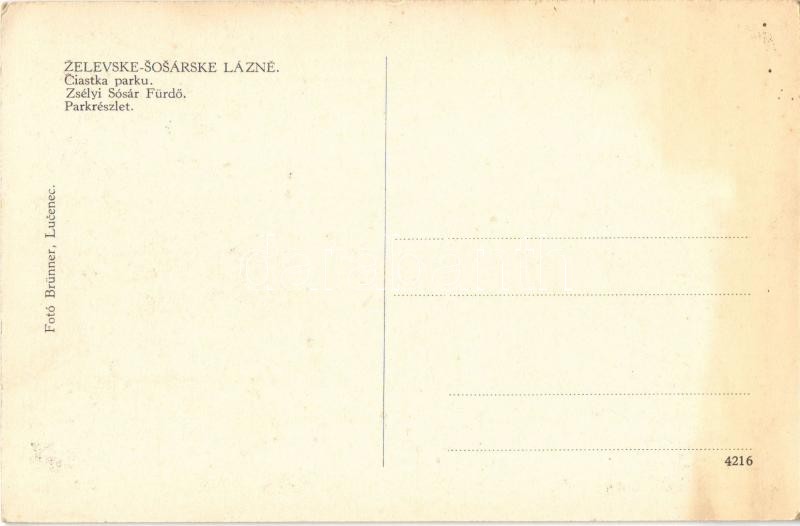 Zsély, Zelovce; Sósár fürdő, park / Sosárske Lázne / spa park https://www.darabanth.com/hu/32-Nagyaukcio/32.1/Kepeslapok/Felvidek~13727/Zsely-Zelovce-Sosar-furdo-park-Sosarske-Lazne-spa-park~II2039016