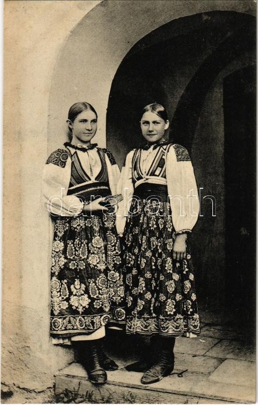 Leírás: Tót népviseletek: leányok Oszadán (Liptó m.). Sochán P. 1910. 183. / Slovakian folklore from Liptovská Osada