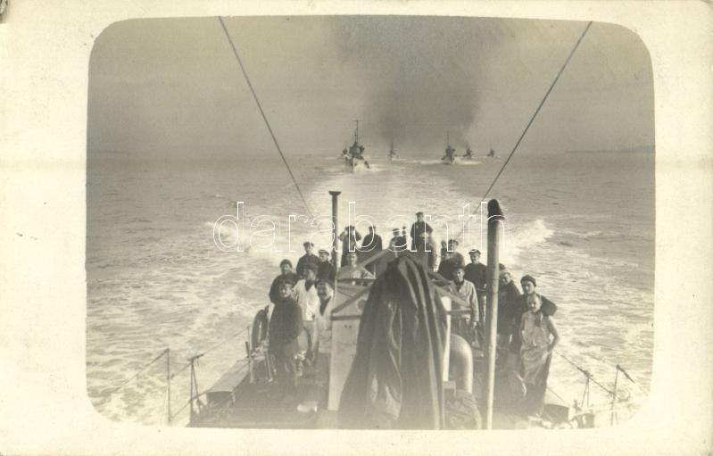 Osztrák-magyar haditengerészet torpedóromboló flotta / K.u.K. Kriegsmarine Hochseeflottille von Bord des Führerschiffes aus / Austro-Hungarian Navy destroyer fleet. photo