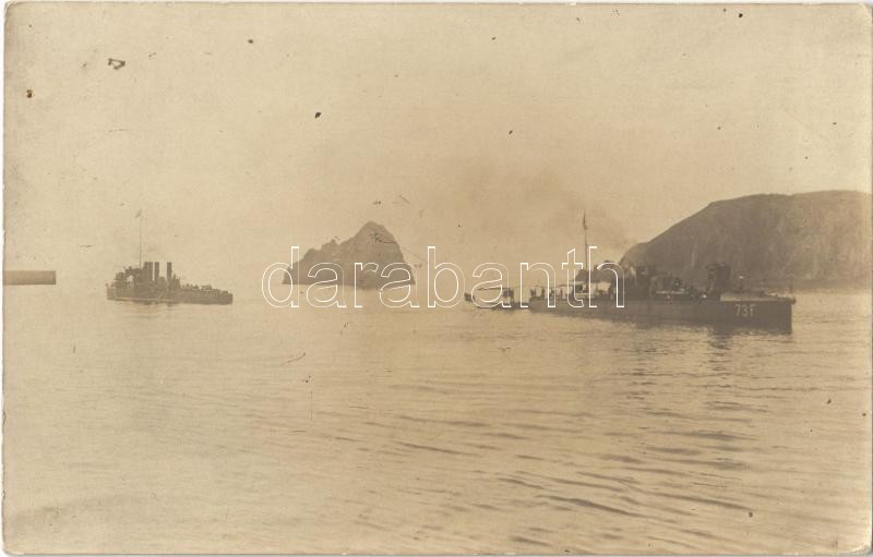 SM Tb 73 F (ex Alk) osztrák-magyar haditengerészet Kaiman-osztályu torpedónaszádja és hidroplán / K.u.K. Kriegsmarine Torpedoboot 73F / Austro-Hungarian Navy torpedo boat SM Tb 73 F and a seaplane (hydroplane). photo