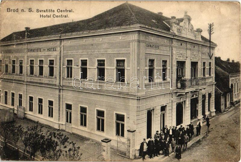 Leírás: 1912 Bród, Nagyrév, Slavonski Brod, Brod na Savi; Központi szálloda / Svratiste Central / Hotel (EK)