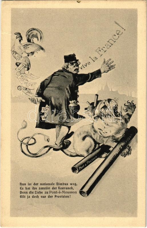 Leírás: Vive la France! Pont-a-Mousson. Ed. Strache Nationale Postkarte Nr. 37. / WWI K.u.k. anti-French military art postcard (tear)
