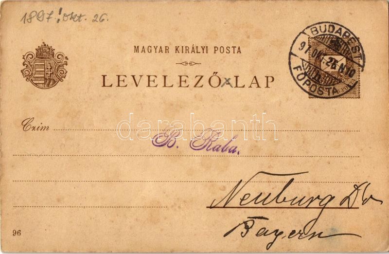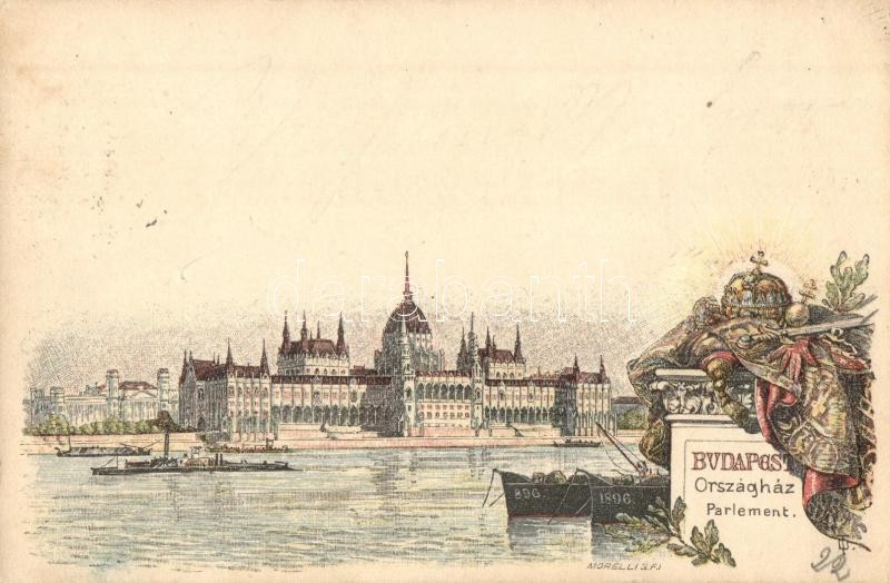 Leírás: 1897 Budapest V. Ezredéves Országos Kiállítás, Országház. 2 Kr. barna Ga. s: Morelli (fl)