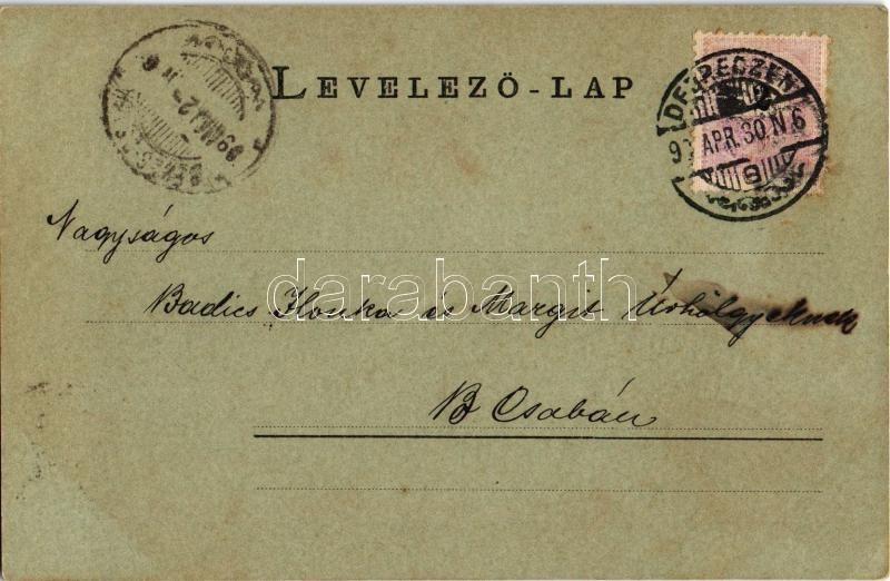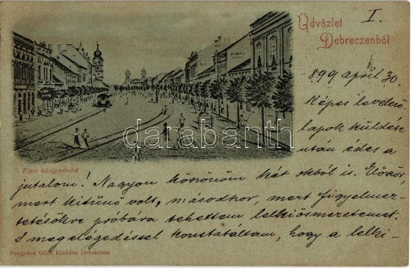 Leírás: 1899 Debrecen, Piac közép részlet, bazár. Pongrácz Géza kiadása, litho