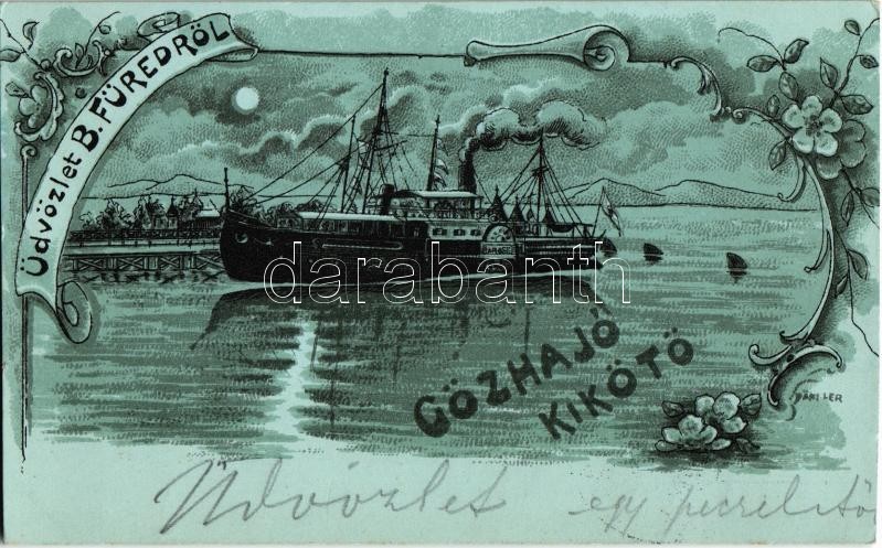 1900 Balatonfüred, Gőzhajó kikötő, Baross oldalkerekes személyszállító... https://www.darabanth.com/hu/32-Nagyaukcio/32.1/Kepeslapok/Magyarorszag~13725/1900-Balatonfured-Gozhajo-kikoto-Baross-oldalkerekes-szemelyszallito-gozhajo-Art-Nouve~II1948857