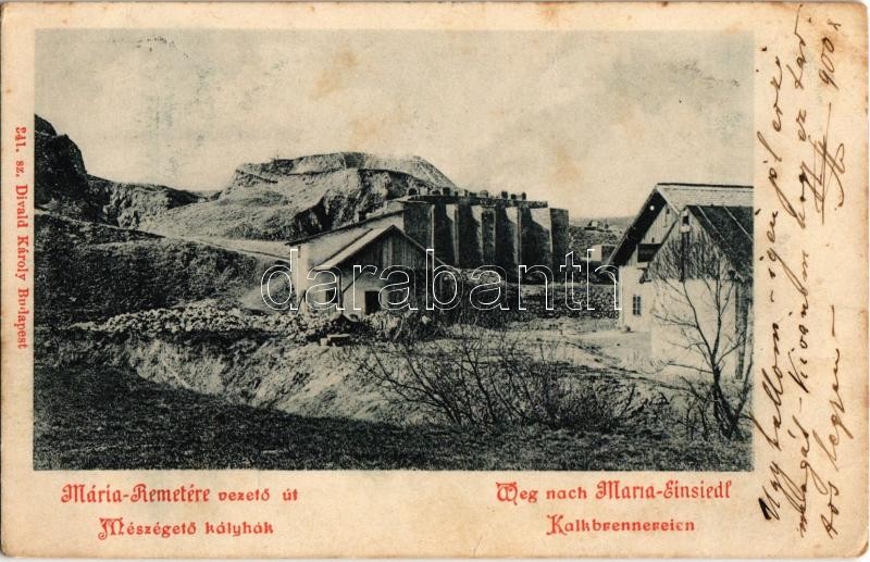 Leírás: 1900 Budapest II. Máriaremetére vezető út mészégető kályhákkal. Divald Károly 341. sz. (EK)