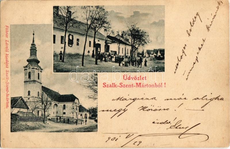 Leírás: 1901 Szalkszentmárton, Petőfi egykori lakóháza emléktáblával, férfi kerékpárral, Református templom. Kiadja Führer László