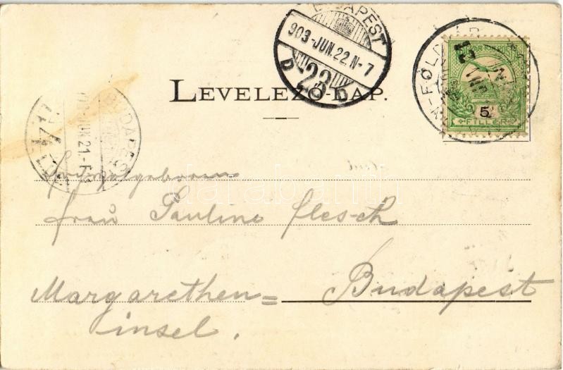 Leírás: 1903 Balatonföldvár, Kupa Vezér szálloda és étterem. Klösz György kiadása, Art Nouveau, floral
