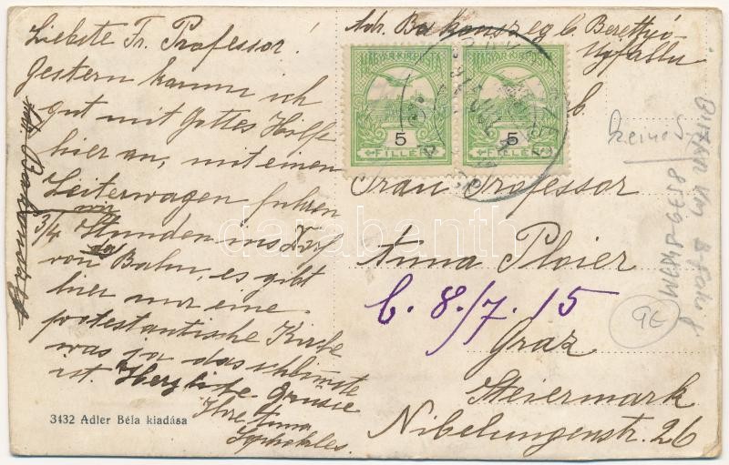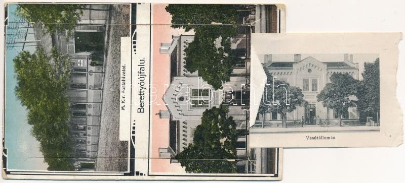 Leírás: 1915 Berettyóújfalu, M. kir. postahivatal, vasútállomás. Adler Béla kiadása, Art Nouveau (hiányos leporellolap / deficient leporellocard)