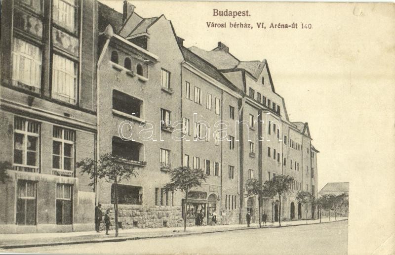 Leírás: 1917 Budapest XIII. Aréna út 140. (ma Dózsa György út) Városi bérház, üzlet (EK)