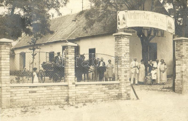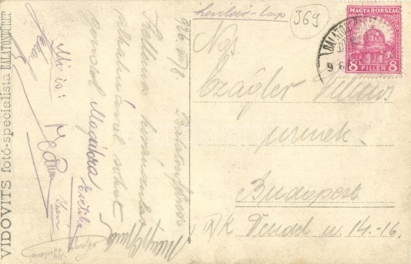 Leírás: 1926 Balatonfüred, Niederecker Ferenc vendéglője a Fogashoz. csoportkép. Vidovits fotó-specialista, photo