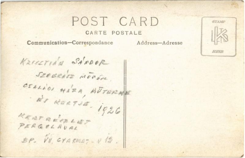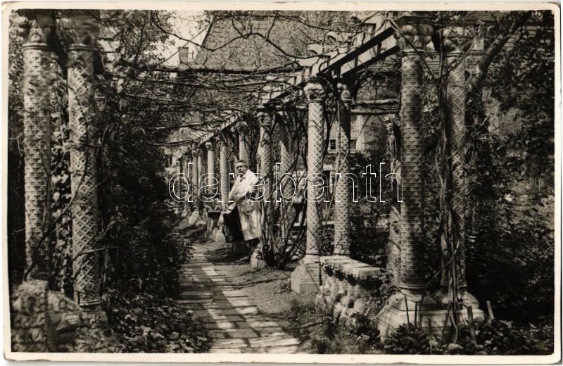 1926 Budapest XIV. Herminamező, Krisztián Sándor szobrászművész családi háza, műterme és kertje, a művész a kertészetében pergolával. Gyarmat utca 12. photo