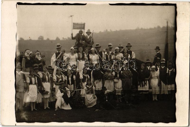 Leírás: 1934-1935 Tarcal, Szüreti ünnepség népviseletbe öltözött falubeliekkel. photo