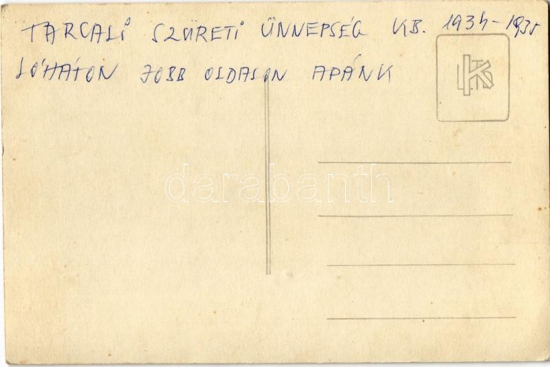 1934-1935 Tarcal, Szüreti ünnepség népviseletbe öltözött falubeliekkel... https://www.darabanth.com/hu/32-Nagyaukcio/32.1/Kepeslapok/Magyarorszag~13725/1934-1935-Tarcal-Szureti-unnepseg-nepviseletbe-oltozott-falubeliekkel-photo~II2032966