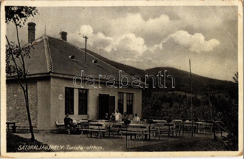 Leírás: 1935 Sátoraljaújhely, Turista otthon terasza, padokon feliratok. Vajda József kiadása (EB)