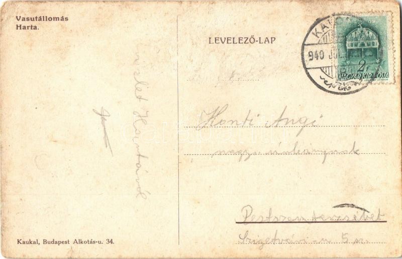 1940 Harta, vasútállomás, HÉV III. osztályú épülete (EK) https://www.darabanth.com/hu/32-Nagyaukcio/32.1/Kepeslapok/Magyarorszag~13725/1940-Harta-vasutallomas-HEV-III-osztalyu-epulete-EK~II2043520