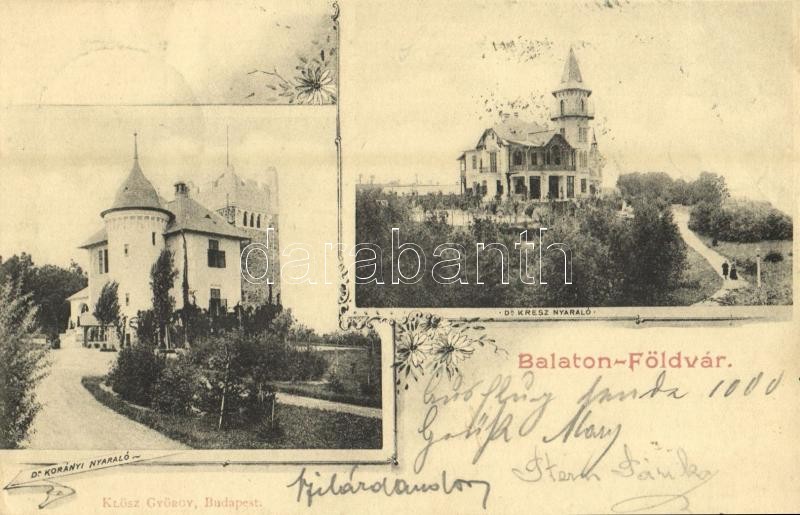 Balatonföldvár, Dr. Kresz és Dr. Korányi nyaralók. Art Nouveau, floral... https://www.darabanth.com/hu/32-Nagyaukcio/32.1/Kepeslapok/Magyarorszag~13725/Balatonfoldvar-Dr-Kresz-es-Dr-Koranyi-nyaralok-Art-Nouveau-floral-Klosz-Gyorgy-EK~II2043809
