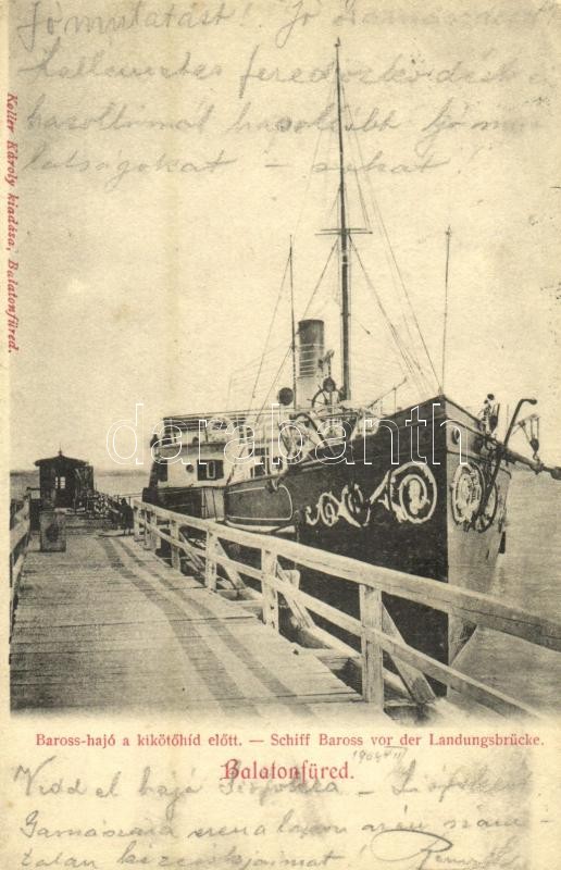 Balatonfüred, Baross hajó a kikötőhíd előtt. Koller Károly kiadása https://www.darabanth.com/hu/32-Nagyaukcio/32.1/Kepeslapok/Magyarorszag~13725/Balatonfured-Baross-hajo-a-kikotohid-elott-Koller-Karoly-kiadasa~II2043808