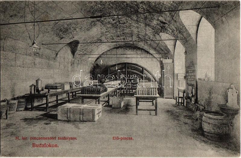 Leírás: Budapest XXII. Budafok, M. kir. pincemester tanfolyam, elő-pince, belső. Hollenczer és Okos kiadása