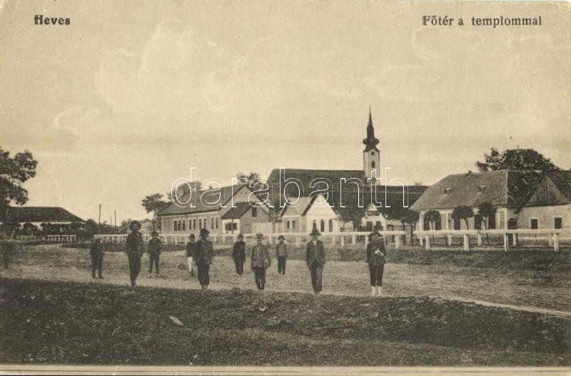 Leírás: Heves, Fő tér, templom. Adler nyomda kiadása