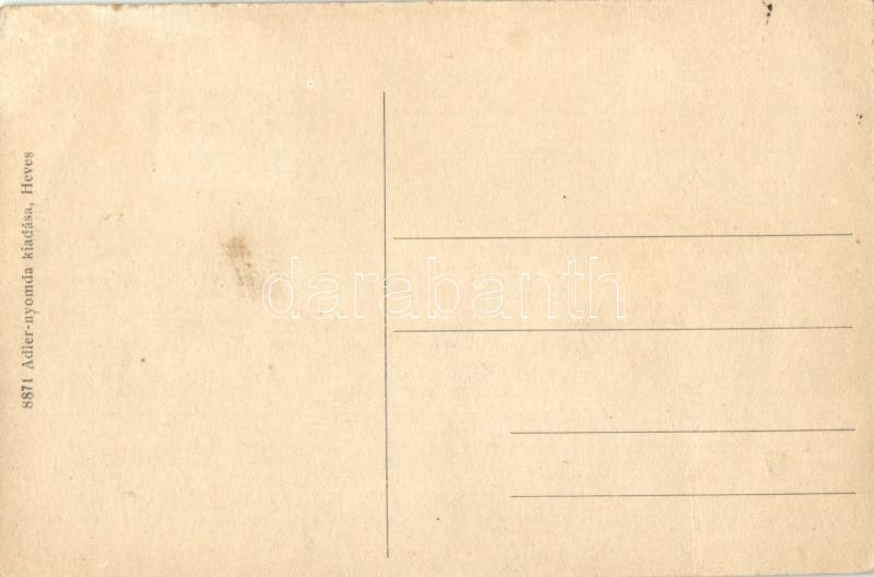Heves, Fő tér, templom. Adler nyomda kiadása https://www.darabanth.com/hu/32-Nagyaukcio/32.1/Kepeslapok/Magyarorszag~13725/Heves-Fo-ter-templom-Adler-nyomda-kiadasa~II2035514
