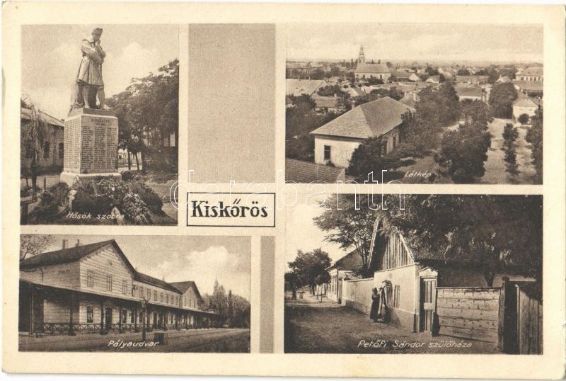 Kiskőrös, Hősök szobra, vasútállomás, Petőfi Sándor szülőháza https://www.darabanth.com/hu/32-Nagyaukcio/32.1/Kepeslapok/Magyarorszag~13725/Kiskoros-Hosok-szobra-vasutallomas-Petofi-Sandor-szulohaza~II2044680