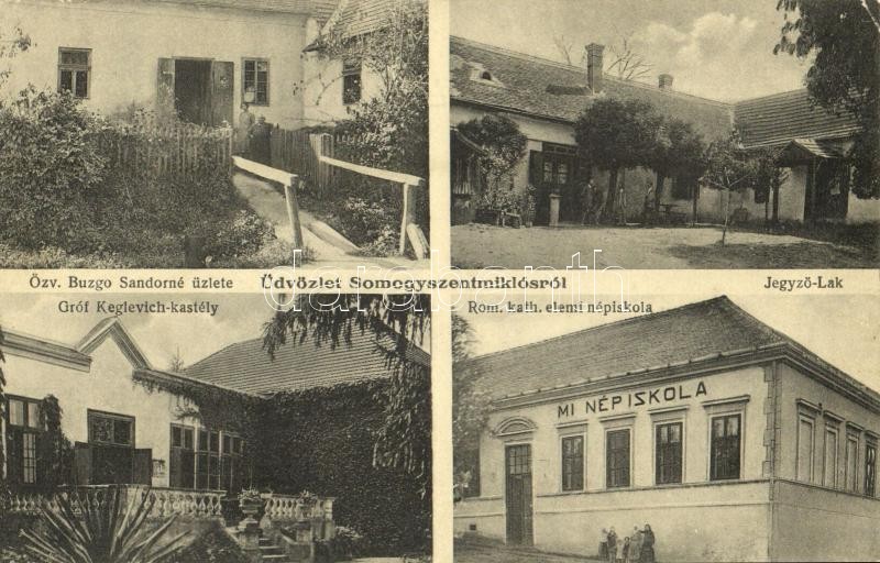 Miklósfa, Somogyszentmiklós, Horvátszentmiklós, Szentmiklós (Nagykanizsa); Római katolikus elemi népiskola, Jegyző lak, Gróf Keglevich kastély, Özv. Buzgó Sándorné üzlete (EK)