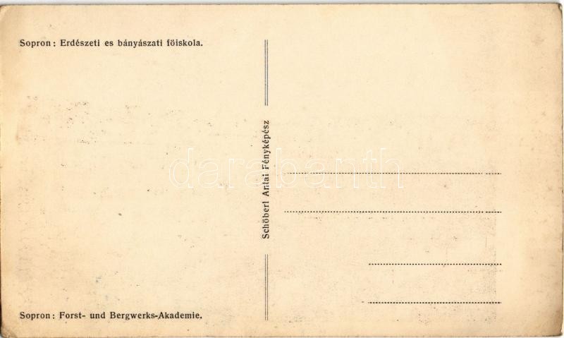 Sopron, Erdészeti és bányászati főiskola. Schöbert Antal fényképész (E... https://www.darabanth.com/hu/32-Nagyaukcio/32.1/Kepeslapok/Magyarorszag~13725/Sopron-Erdeszeti-es-banyaszati-foiskola-Schobert-Antal-fenykepesz-EK~II1942950