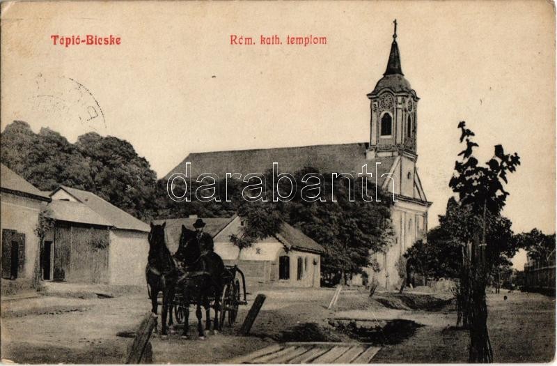 Tápióbicske, Római katolikus templom, lovaskocsi, utcakép (EK) https://www.darabanth.com/hu/32-Nagyaukcio/32.1/Kepeslapok/Magyarorszag~13725/Tapiobicske-Romai-katolikus-templom-lovaskocsi-utcakep-EK~II1943355