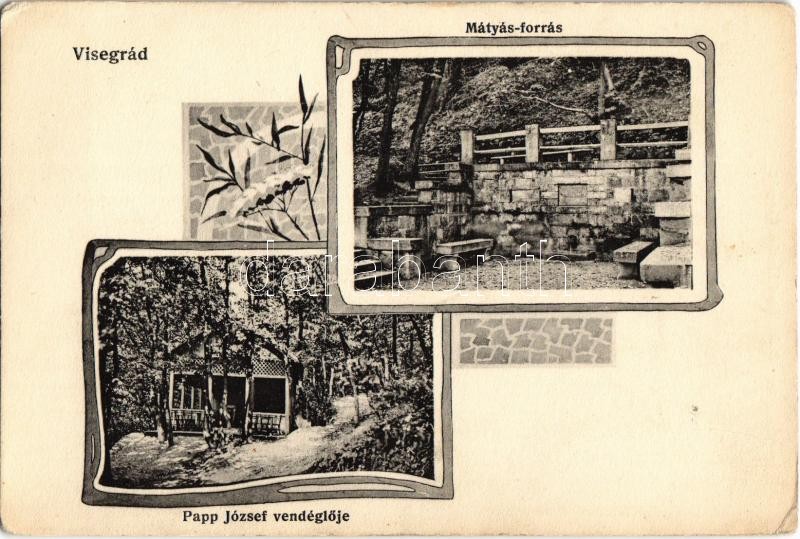 Leírás: Visegrád, Mátyás forrás, Papp József vendéglője. Art Nouveau, Birkl József kiadása (EK)