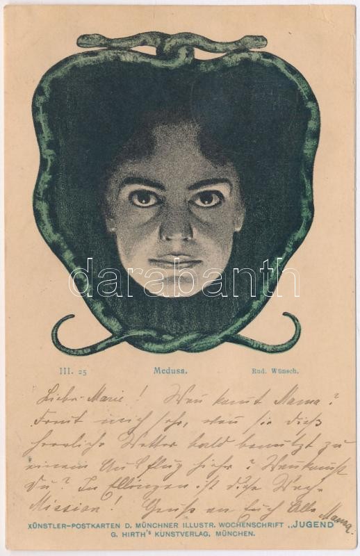 Leírás: 1899 III. 25. Medusa. Künstler-Postkarten D. Münchner Illustr. Wochenschrift "Jugend" G. Hirth's Kunstverlag, München s: Rud. Wünsch