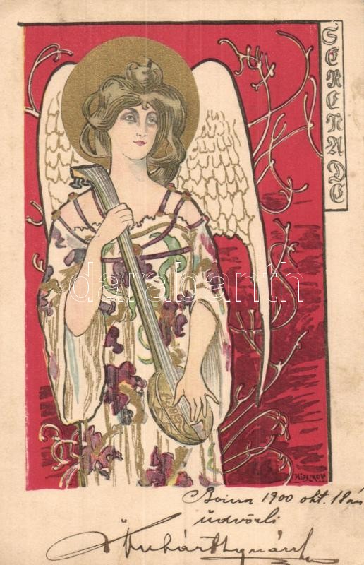 1900 Serenade / Art Nouveau angel with lute s: Kieszkow https://www.darabanth.com/hu/32-Nagyaukcio/32.1/Kepeslapok/Muveszlapok~13807/1900-Serenade-Art-Nouveau-angel-with-lute-s-Kieszkow~II1859626