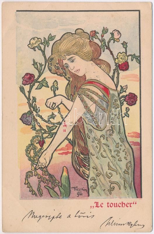 Leírás: 1901 Le toucher / Four Senses: Touch. Polish Art Nouveau postcard s: Kieszkow