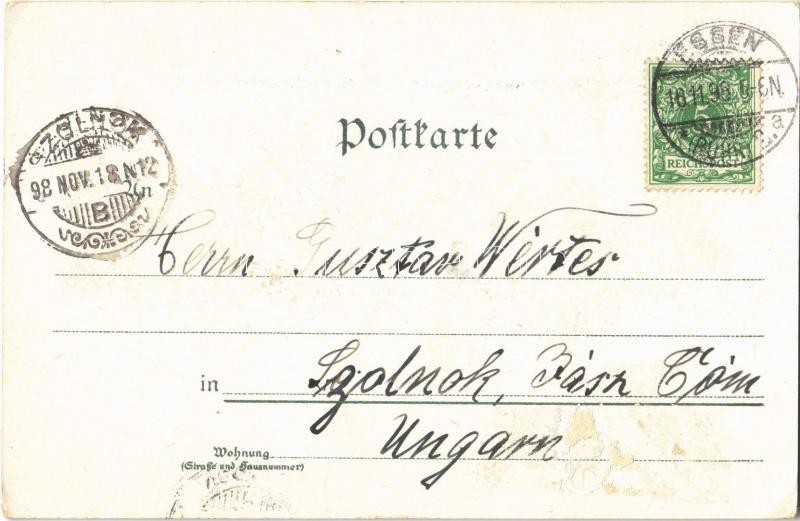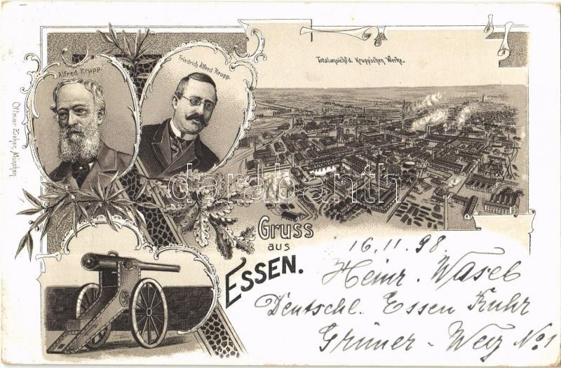 1898 Essen, Krupp'schen Werke, Alfred und Friedrich Alfred Krupp / steel factory with its owners (founders), cannon. Ottmar Zieher Art Nouveau, floral, litho (EK)