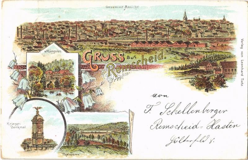 Leírás: 1898 Remscheid, Müngsten, Krieger Denkmal, Thalsperre / military heroes monument. Leonhard Tietz Art Nouveau, floral, litho (EK)