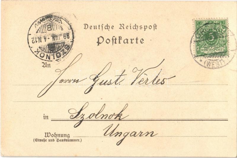 Leírás: 1899 Gronau, Bahnhofstrasse, Unter den Linden / streets. Joh. Schievnik Art Nouveau, floral, litho