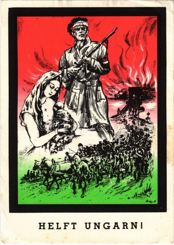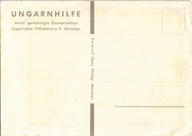 Helft Ungarn! Ungarnhilfe minist. genehmigte Sammelaktion Ungarischer Hilfsdienst e. V. München / Help Hungary! WWII German propaganda art postcard for helping Hungary s: Hans Philipp (EK)