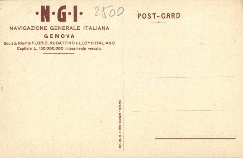 Leírás: Gyorshajójáratok az Egyesült Államokba és Kanadába. Navigazione Generale Italiana NGI Genova / talian shipping company advertisement (EK)